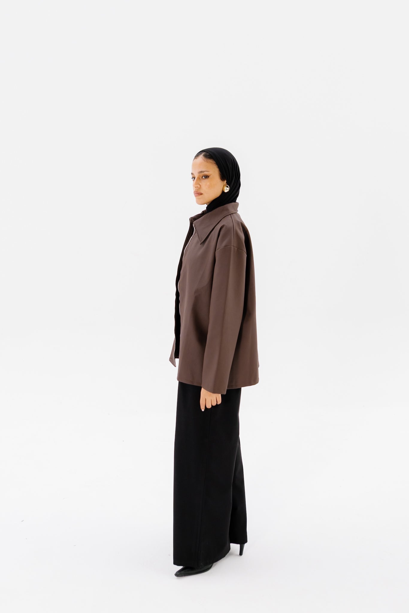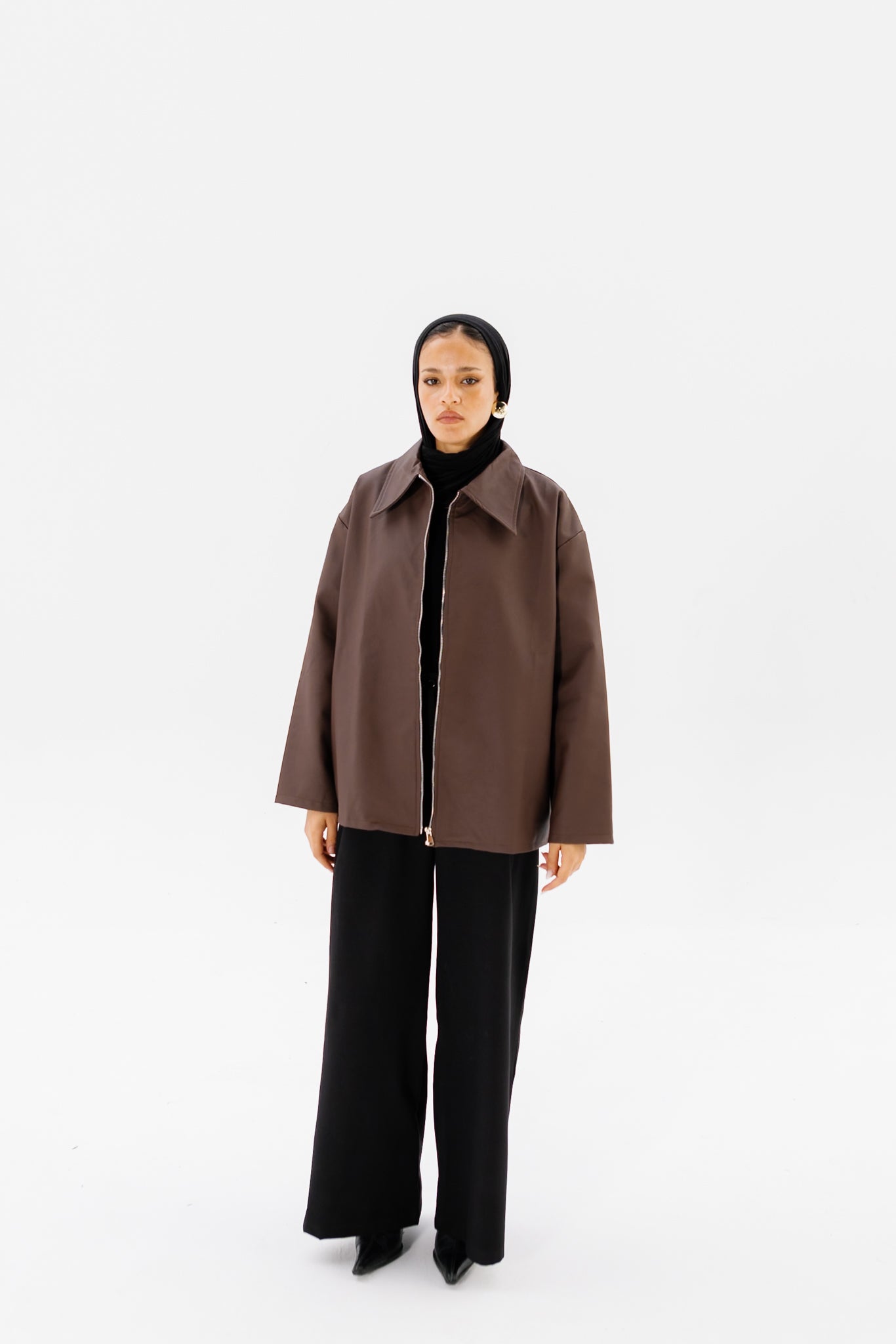 Oversized Leather Jacket - Brown